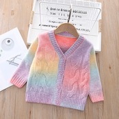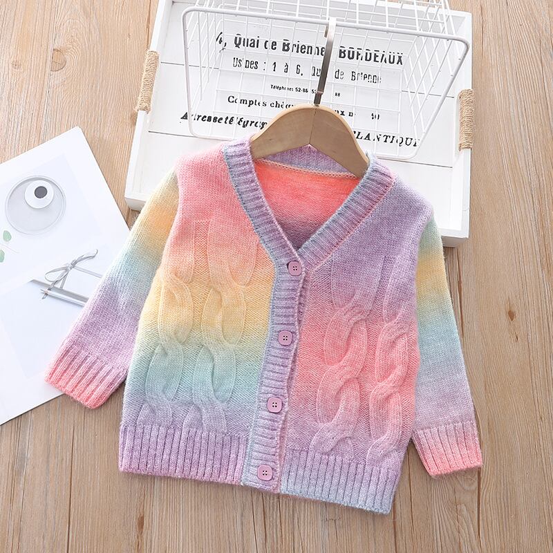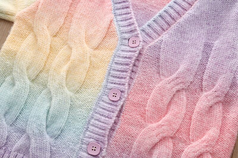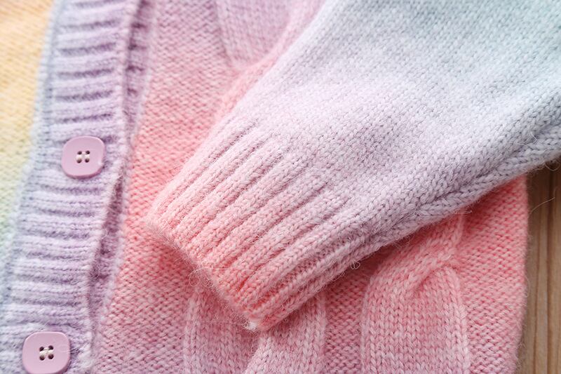 一枚で華やかなコーディネートが完成するグラデーションレインボーカーディガンです。
