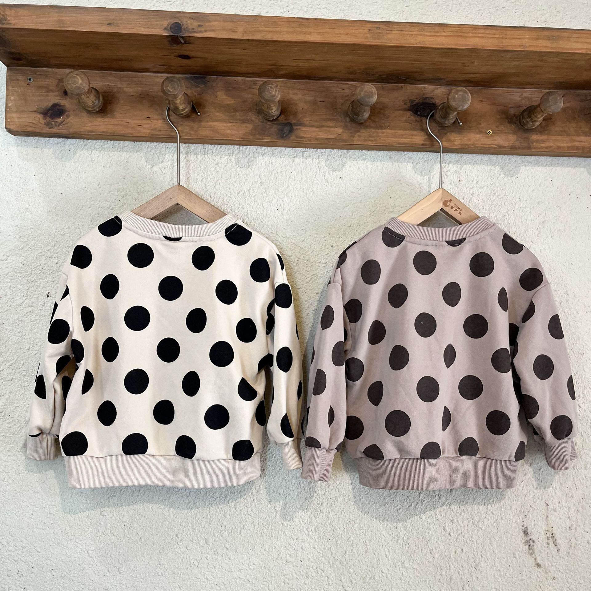 ドット柄が可愛いポルカドット裏毛スウェットのご紹介です。ふんわりとした裏毛素材で暖かさも抜群。お子さまの快適な遊びやすさを考えて、全サイズ展開しています(80cm-150cm)。どんなコーディネートにも合わせやすいシンプルなデザインで、日常使いにぴったりです。