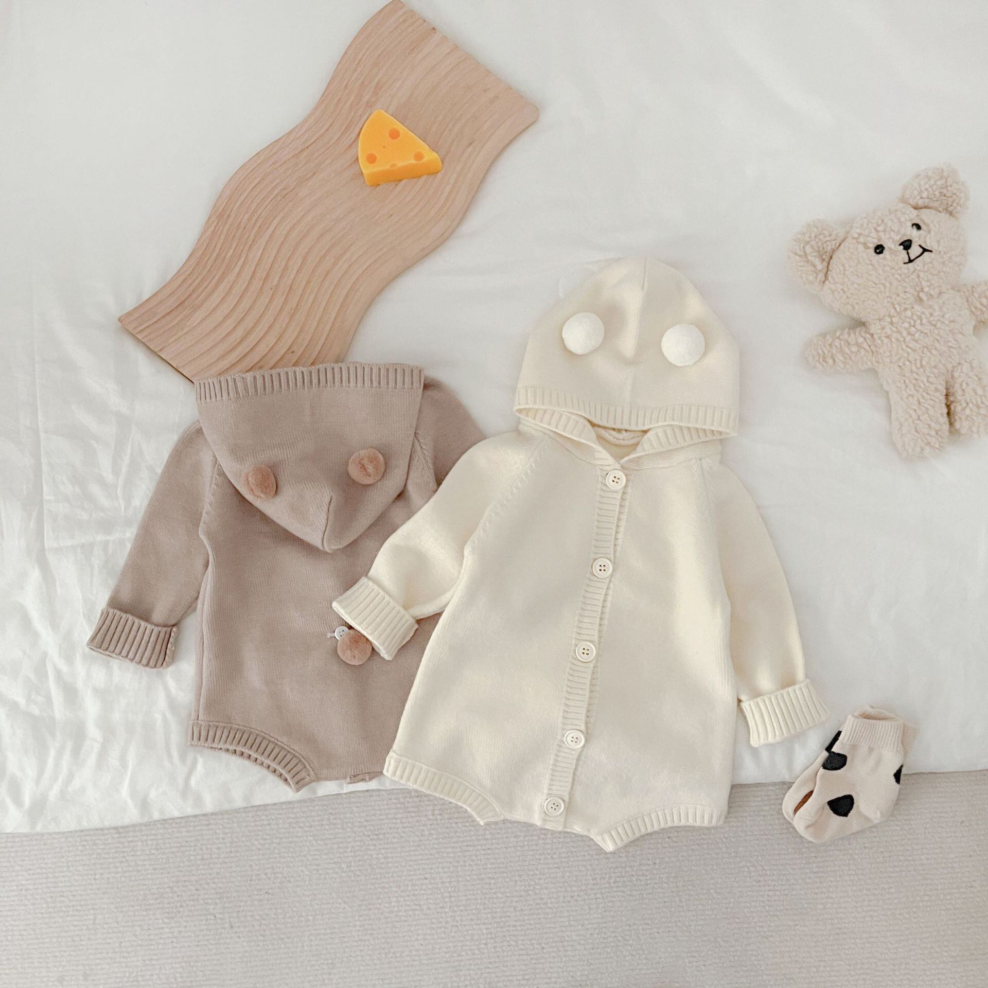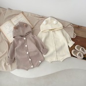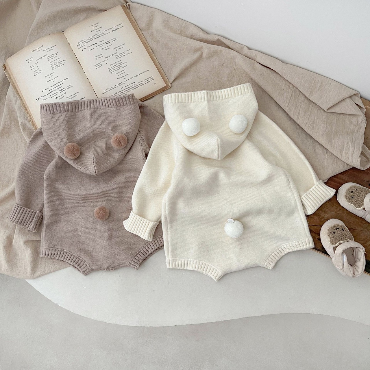 ぬくもりあふれるナチュラルな雰囲気が魅力のクマ耳ロンパースです。