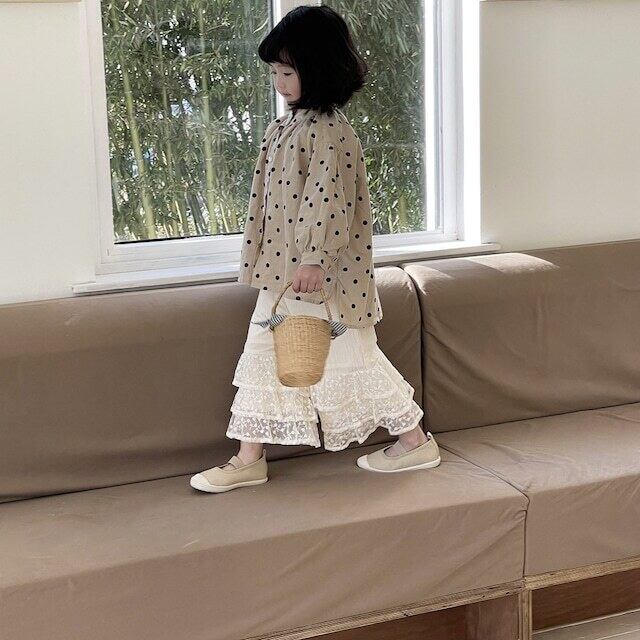 【90cm-140cm】2024新作 リネン水玉柄ブラウス dede-431