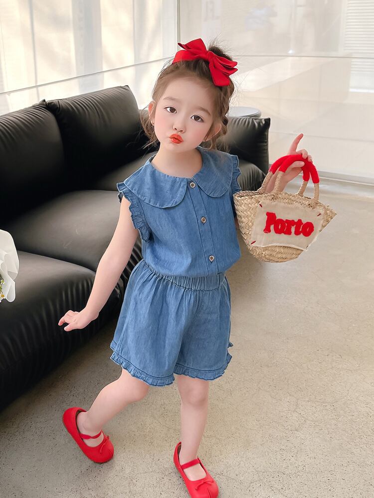 【90cm-140cm】2024新作 おすすめ!可愛いデニムセットアップ dede-499